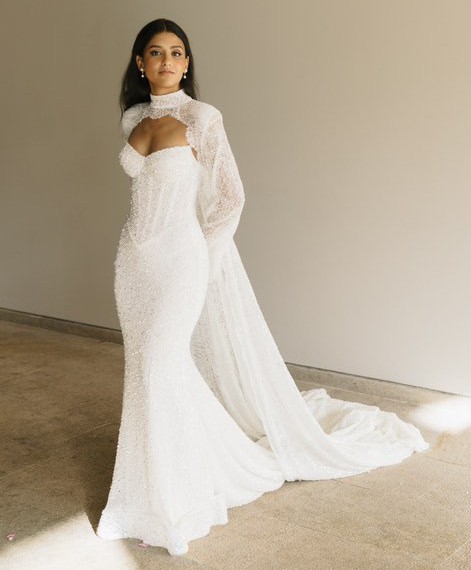 I designed a custom cape with the viero bridal team that is removable. The cape has shoulder pads and is fully lace.