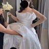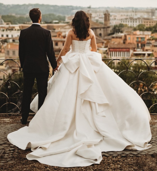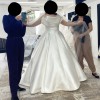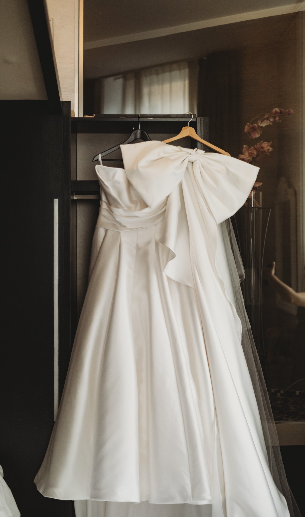 This Sophie Dress from Laleh de Couture features a stunning strapless design with luxurious satin and graceful drapery across the bodice. It has a timeless elegance to it and has a beautiful detachable bow you can wear on the back of the dress. The long train and bow makes a statement and has also been thoughtfully customised with care to be able to pin up at the back so you can dance!