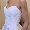 Top of the dress is a sweetheart neckline (Nova - Modern Love collection 2021) with the detail of Bliss (Modern Love collection 2021) - adorned with beautiful 3D floral appliqué and beading. It has the amazing Suzanne Neville staple internal corsetry with a buttoned up back. Bust cups have also been sewn in.
