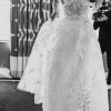 I love this dress dearly and am sad to part with it, but can't justify keeping it in my closet when someone else can experience as much joy from it as I did. This is an original "Jamie" Mira Zwillinger couture dress. The internal corset allows for that "cinched" waist look while also keeping it comfortably and securely in place throughout hours of dancing, and the relaxed lower half meant I felt free to eat/drink/bloat and still feel confident in pictures. I wore this dress from 9 am until 11 pm and it didn't budge, which was one of my concerns about a strapless dress. The weight is anchored at your waist, rather than your underarms/top, which makes it both more comfortable and more flattering.