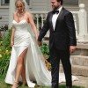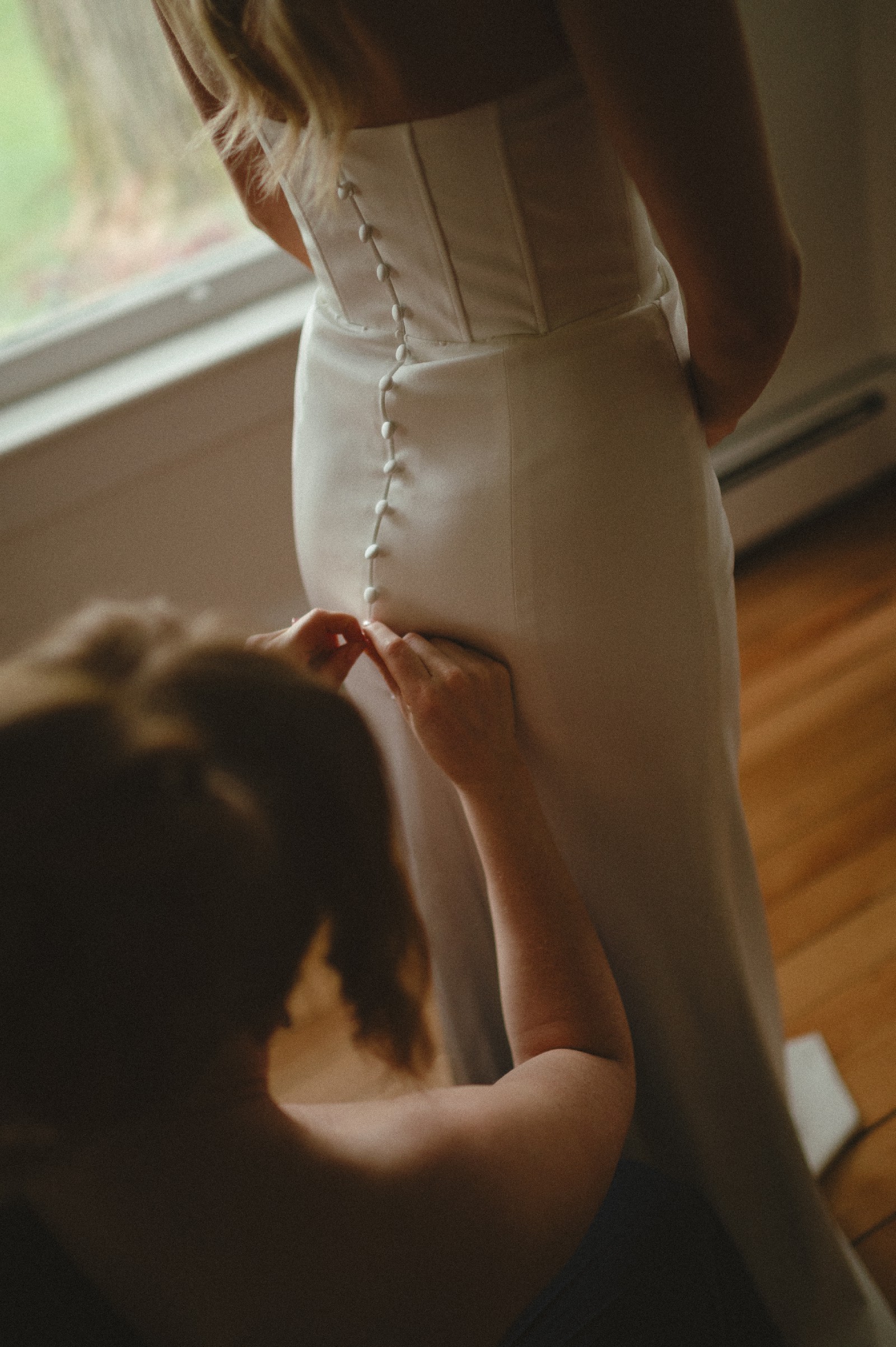 It’s Jane Hill’s best selling dress! The dress includes an optional detachable train (paid extra for) with corset bodice detailing and a side split. I’ve paid extra to add the button detailing down the back (bum) of the dress, so you can see these once the train is removed. Both were additional costs of ~$300 CAD.
