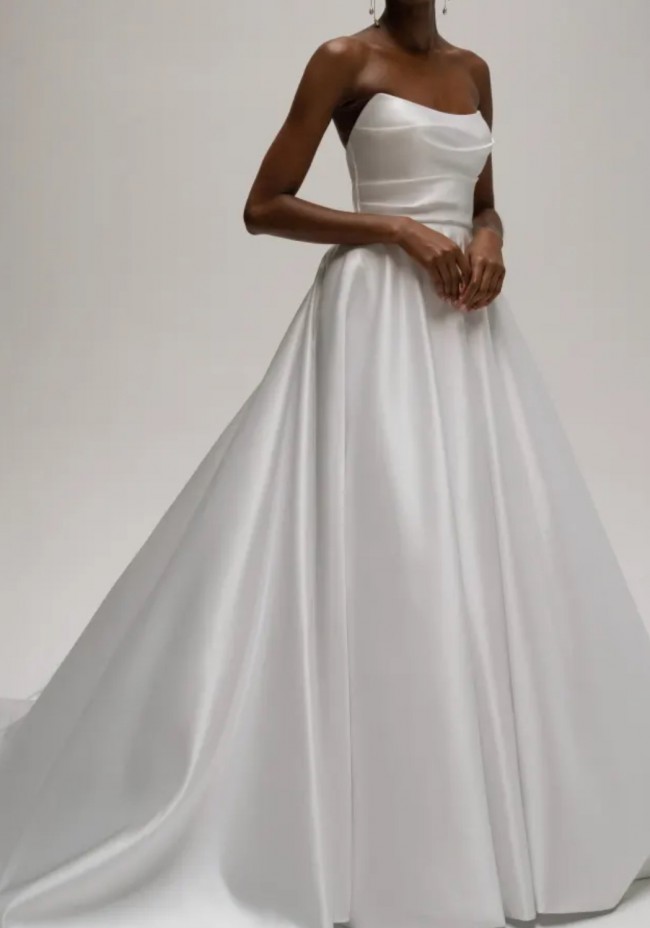 This brand-new Jenny Yoo Gracelyn wedding gown is the perfect choice for the modern bride seeking timeless elegance. This dress is unworn, in pristine condition, and has not been altered! The ruching is beautiful and the fabric is a very pretty satin! Just picked up last month with tags attached and in original garment bag. Paid $3200 with tax!