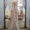 Meet Diel, a sheath sequined skirt with an embroider bodice, illusion neckline, short sleeves, with an inner corset back.