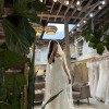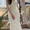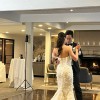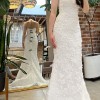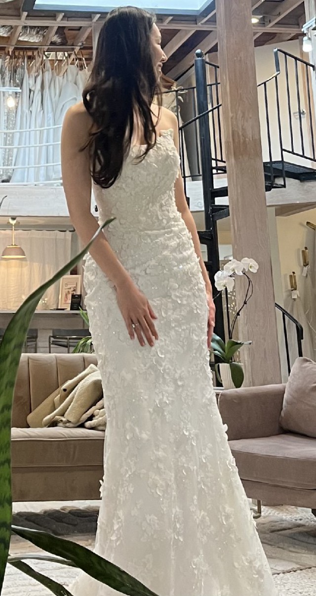 The bustle hook is nicely hidden under the flower at the midline. Willing to include the veil(white, 6 feet floor length)!