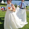 - Hem layer was shortened front through sides - the idea was to be able to have high heel shoes for the ceremony (and the heels were shown a little bit) and then change to flats with the dress reaching exactly to the floor
