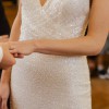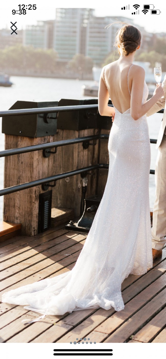 Absolutely gorgeous dress. Only tried on, so it is brand new. Going with something different since I’m having an outdoor wedding and don’t want it dragging on the dirt all day. Seriously jaw dropping and so beautiful! Fits about street 6-8 US —- If you are a modern bride with a sexier side, look no further than our stunning Mila design. The lace gradually drapes over the waistline, drawing the eye to the layered bodice detail and the soft drop of the skirt. The beaded fabric hugs in all the right places, sculpting the body for a flattering silhouette. Her beaded shoestring straps follow down the open back, making this style truly one of its own. This head turner features a zip closure and a delicate sheer train. Our Mila is a MWL design here to satisfy your bridal dreams.