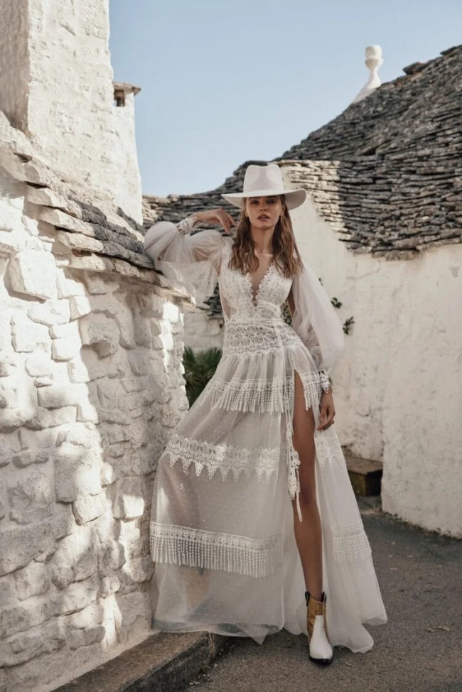 High slit with semi sheer skirt.