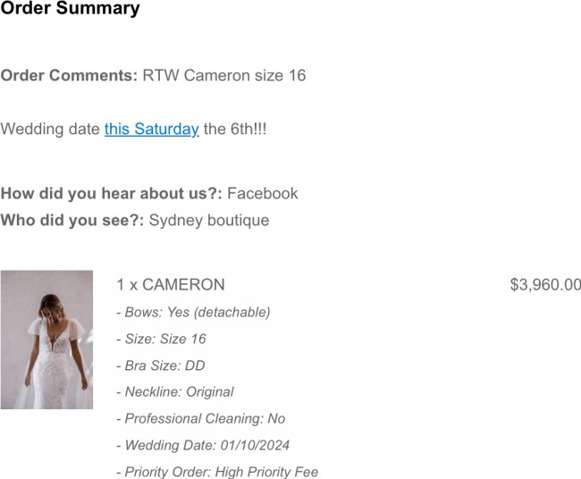 I ordered this dress last minute like I only got it the day before my wedding when my same Cameron dress I had made to fit did not fit me 🙈 it’s a size 16 even though I am a 14 the dresses are a size smaller in fit. I did not have the dress altered at all in height or width or anything but I did alter the bust slightly to close up the gap as I have a large bust I personally felt very on display 😅 it is a very easy fix to have it back to normal. I only wore my dress for 3 hours before changing to an evening gown and the dress is in amazing condition. If you have any questions or would like more photos or videos please reach out. Thanks