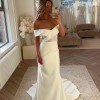 Made With Love bridal gown Theo is the definition of understated beauty. This gorgeous design combines our buttery soft French crepe with a gorgeous window of delicate Chantilly lace in her bodice, drawing the eye without distracting from her classic silhouette. She features statement ivory boning and a flattering Bardot pattern that beautifully frames the bust and waist. To elevate Theo from all angles, she also features a delicate line of crepe buttons from the top of her bodice to the end of her godet, which further accentuates her feminine form.