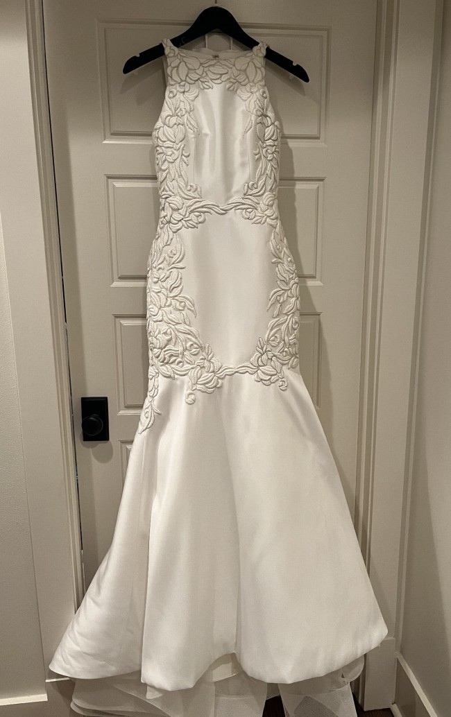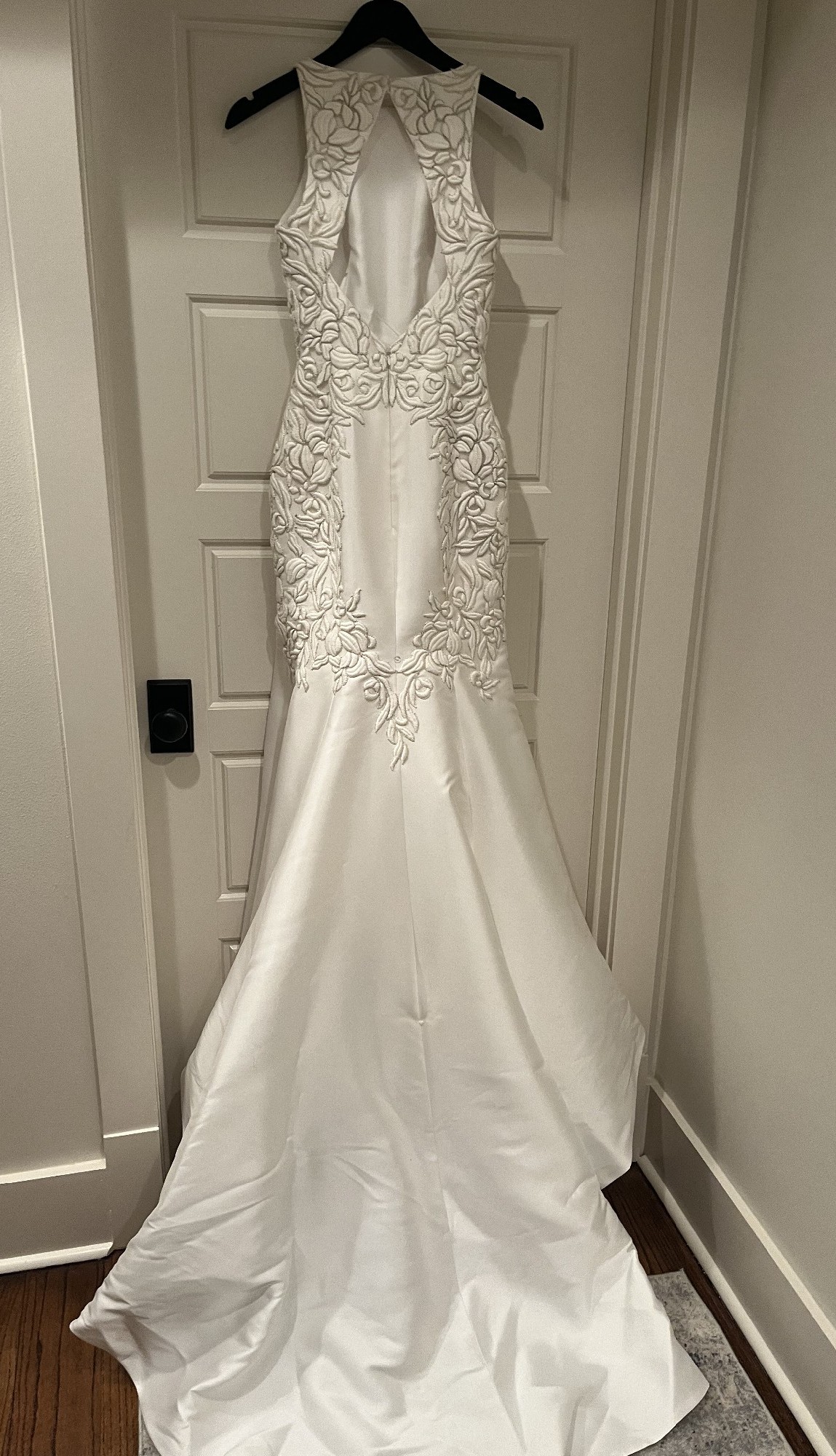 Dress was never worn . Literally tags still on them. Has been kept in a covered bag- in a closet with AC.