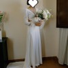 The enchanting V-neckline adds a touch of allure without compromising modesty, while the backless detail creates a stunning visual from behind. The delicate 3/4 sleeves offer just the right amount of coverage, making it ideal for both spring and fall weddings. I love how fluid and comfortable it felt to wear, allowing me to dance the night away without a worry.