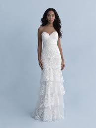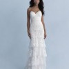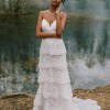 Our Tiana gown evokes the opulence and elegance of the Jazz Age. The slender silhouette with a strapless, sweetheart neckline gives this dress a gorgeous and understated beauty. Delicate and sweet; tiers of soft tulle and Alencon lace cascade the length of this gown-- very modern with vintage flair.