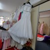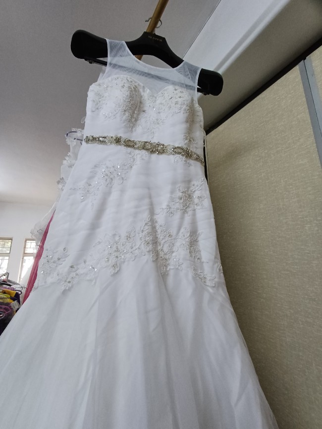 Bride and co dress with alterations, has a medium size veil. Dried cleaned. Worn once. Size 10. Measurements not written inside the dress.