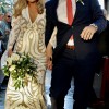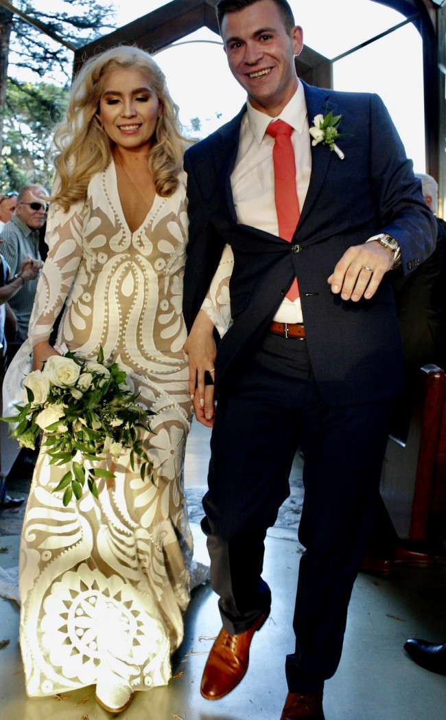 For our modern, bohemian brides. Layla uses bright and striking silk applique techniques to create this large scale gypsy print, placed to accentuate the female figure and flatter the body. On trend Deep V plunge neckline is supported with illusion mesh, and sits in harmony with fitted sleeves and bodice. From the low hip, the skirt falls to create elegant movement with every step.