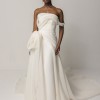 From the website: OPHELIA "Soft elegance takes center stage with the Ophelia gown. Ophelia showcases a luxuriously wrapped bodice that gathers into a handcrafted organza garden rose at the waist before gracefully spilling into an A-line skirt, complete with a captivating front slit. Designed for modern romantics seeking both a firm fit and a touch of drama, the Ophelia gown offers a fully structured silhouette that embraces the contours of the body while allowing the skirt to flourish in all its splendor."
