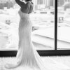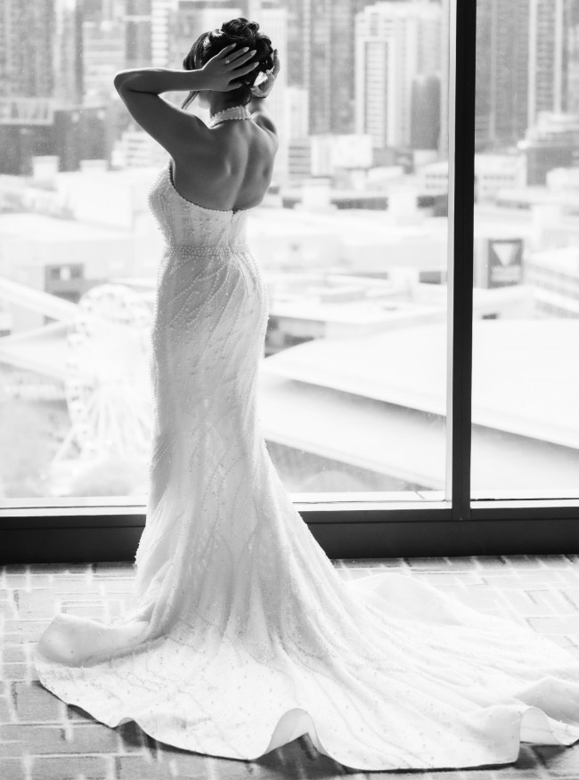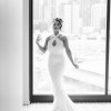 This Zhanel Bridal Couture gown is the epitome of timeless elegance and sophistication. Crafted with exquisite attention to detail, it features delicate pearl embellishments that add a touch of luxury to its stunning design. The unique neckline is a standout feature, offering a refined, graceful look that is unlike anything else. The gown hugs the figure beautifully, creating a flattering silhouette that enhances your natural curves.