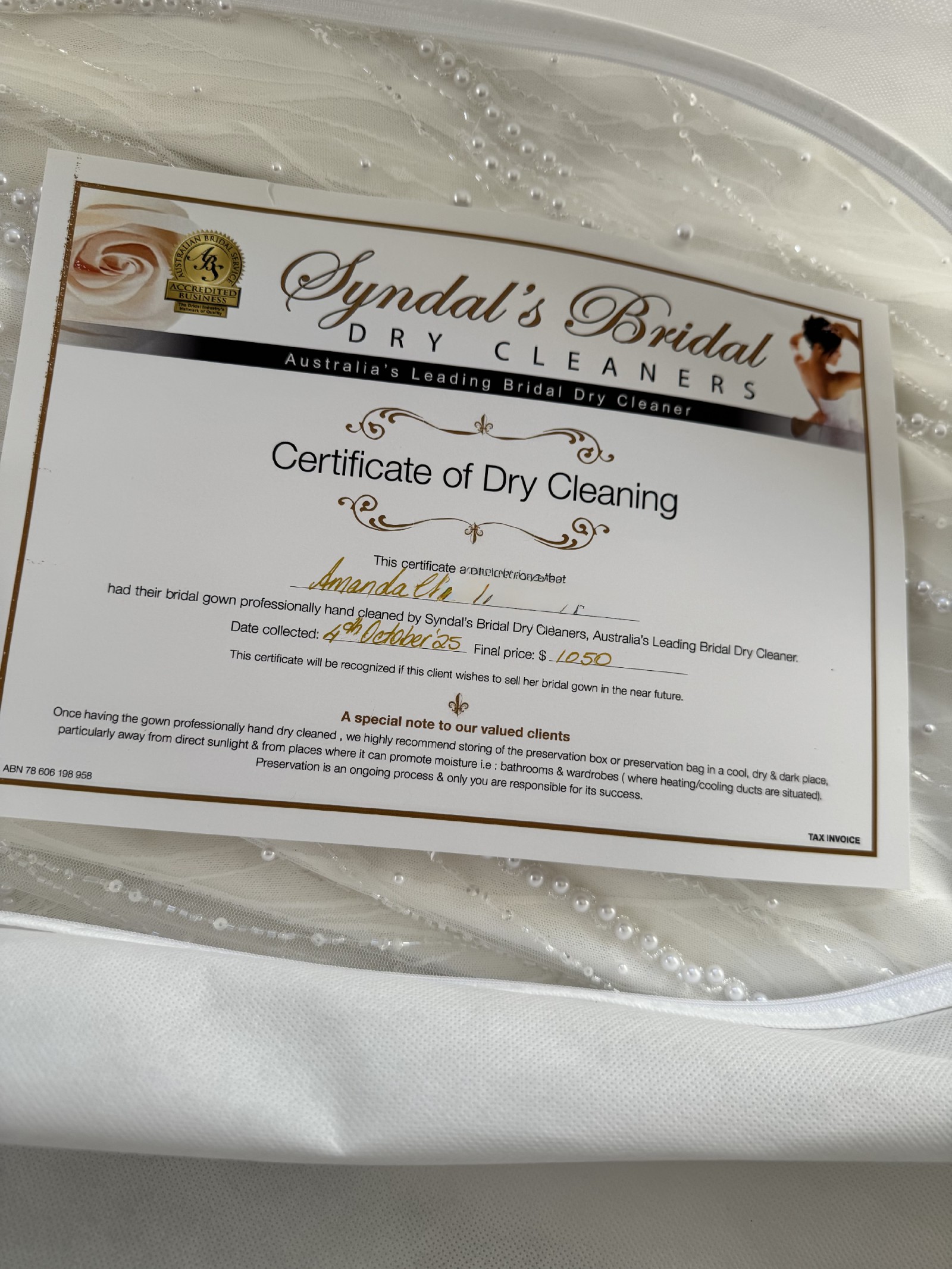 - Dry cleaned