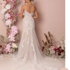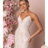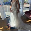 Dress is unaltered, shapes body, brand new, sheer covering in deep V in chest, detailed embroidery on train