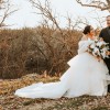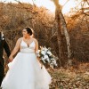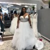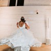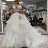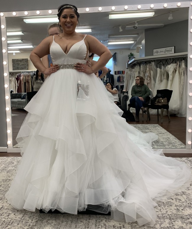 Dress has a crystal/beaded belt attached that ties in the back with a ribbon. Has a bustle.