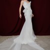 The Prophecy dress by NEWHITE features a strapless sweetheart neckline, a classic cut reinvented for the modern bride through it’s bias-cut skirt silhouette and a NEWHITE signature crinkle organza draped overlay finished with a bow detail.