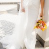 Balance the décolletage with a draped [H veil](https://www.mrsfray.com/shop/h-veil-by-newhite-bridal) cascading behind you for the ultimate feminine and chic ceremony look.