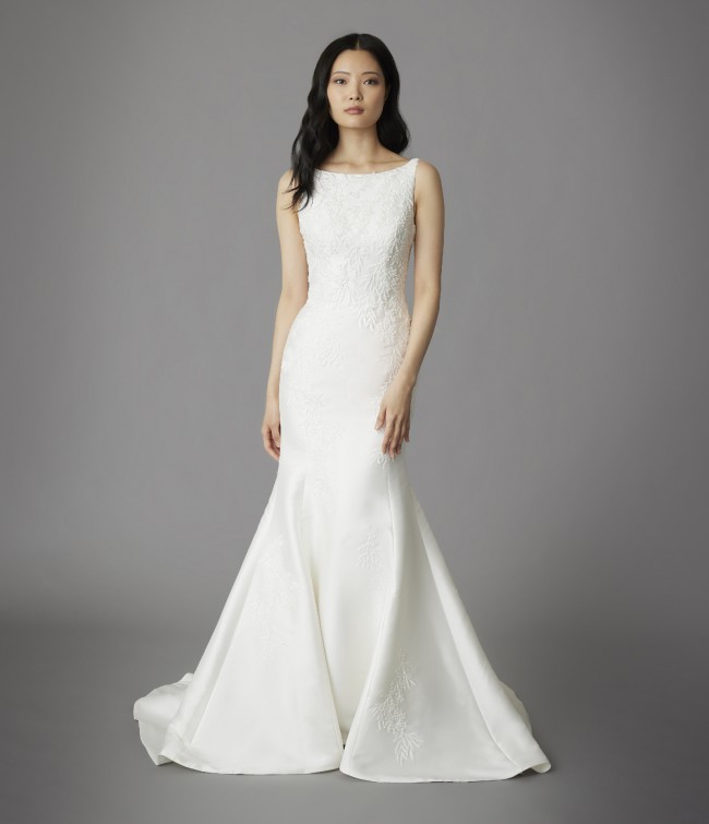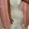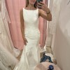 Allison Webb bridal gown - Ivory mikado trumpet gown with Chantilly lace appliqués, featuring a soft Sabrina neckline, and scoop back. Finished with covered buttons to end of train” Fall 2022 collection. This dress really shows off your figure while still maintaining modesty and elegance. Dry cleaned and great condition.