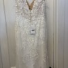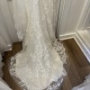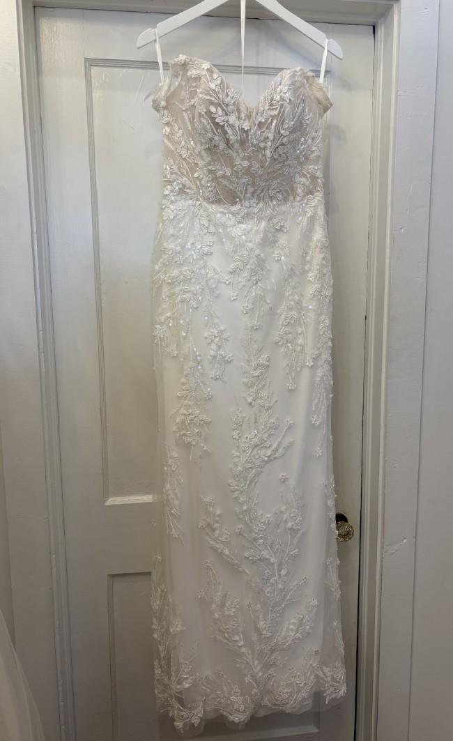 The lacework of combined tonal beading, sequined appliques, and 3d laser cut chiffon petals add a lightweight sophistication to this fit and flare.
