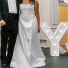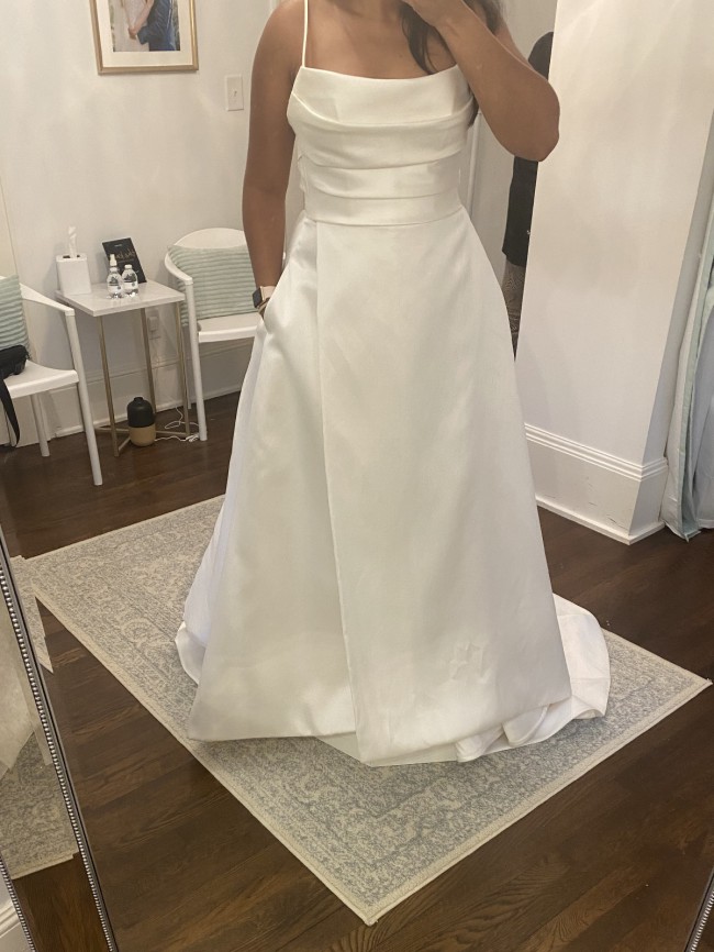 A Paloma Blanca that was the most beautiful & comfortable dress I could’ve gotten married in. Loved the flattering square neckline and pockets!