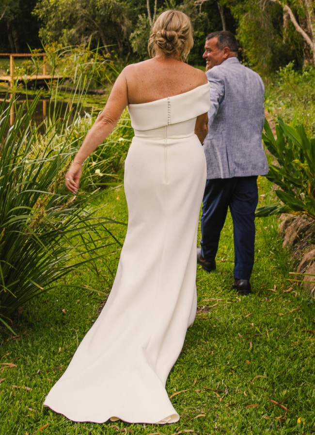 The Byron dress by Chosen is the most beautiful dress I have ever worn. It fits curves beautifully. The fabric is bonded georgette and is extremely flattering. I am the second owner of this dress which I dry cleaned when it arrived. The grip for the zip is missing and I placed a safety pin which is easily hidden when zipped up. The dress has not been dry cleaned again since I wore it yet has a few minor marks but will no doubt come up looking brand new after dry cleaning.