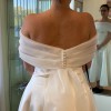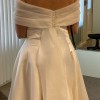 Custom made Shaw that is removable , comes seepage with chiffon material and pearls on the back. Dress itself is a plain nice heavier material. The dress is not made anymore and i was able to get a custom Shaw done for it so it is one of a kind !