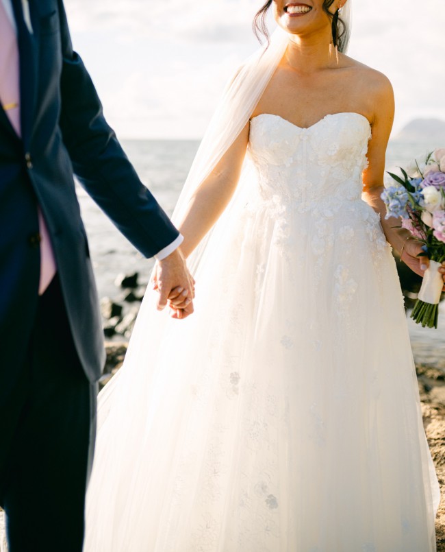 Style 1455 from designer Martina Liana is a luxurious couture wedding dress, showcasing a sublimely graceful A-line silhouette. The piece is crafted from beautiful floral allover lace with detachable long sleeves and semi-sheer strapless back bodice, detailed with shimmering beaded floral accents and corset boning. A slim A-line skirt is crafted from a mix of tulle, lace and 3D floral accents, falling into a dramatic cathedral train for a show-stopping bridal look.