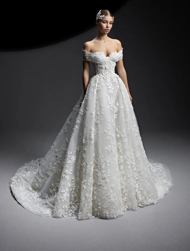 This enchanting IDA dress by Zuhair Murad made my wedding day truly unforgettable. With its stunning ballgown silhouette and elegant off-the-shoulder neckline, I felt like a princess walking down the aisle. The exquisite tulle fabric draped beautifully, creating a captivating shape that accentuated my figure while allowing for effortless movement.