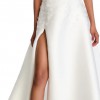 Structured, scooped bodice with square neckline on mikado fabric. Perfect for bigger busts even with the low back you have tons of support. (I’m a D for reference).