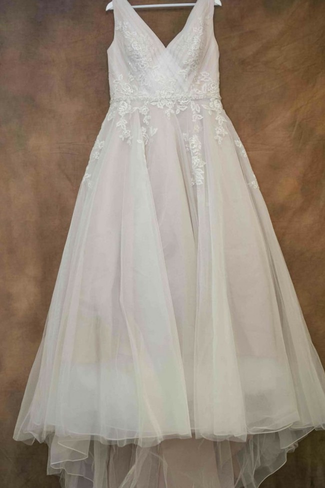 A beautiful dress, with a hint of blush pink, and amazing detail on the bodice. A very flattering fit on the bust. You will feel like a princess. Priced for a quick sale.. ☺️🙏