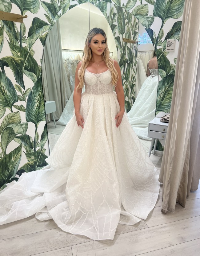 Authentic Sima Couture Zambak style wedding dress worn on wedding day for 6 hours. Very extravagant dress with lots of beading and sparkle. Truly one of a kind.