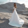 For sale: Davis Wedding Dress by Chosen By Kyha—a stunning off-the-shoulder ballgown in luxurious ivory duchess satin. This gown features a structured bodice, a dramatic plunging low back, and a full, flowing skirt. For a modern twist, the dress also includes a subtle skirt slit, adding a touch of elegance and ease of movement.