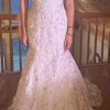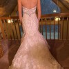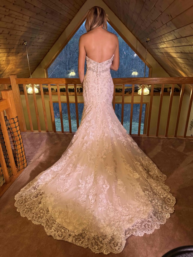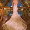 A gorgeous gown. The fitted bodice has a sweetheart neckline that is embellished with Swarovski crystals. The entire design is adorned with delicate lace applique on English net.