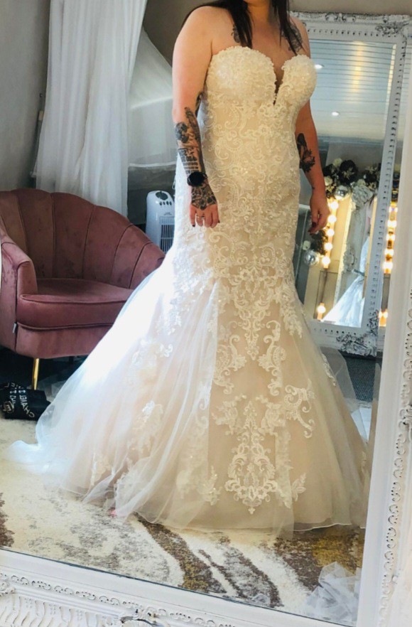 This dress is brand new unaltered only worn to try on, I ended the relationship and cancelled the wedding.