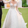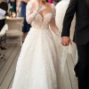 Martina Liana Luxe collection ivory, A-line wedding dress with custom removable long lace sleeves with bell-bottom flare at wrists. Beautiful sweetheart neckline with built-in padding (push-up cups) for support. Dress is in perfect condition and absolutely stunning. Its unique 3D hand-woven flowers covers the entire dress from head to toe, which makes this a classic, elegant, timeless look and ultimate pop in photos. The back has a nude/transparent corset and small buttons for secure fit, very waist slimming. The train has snip-buttons to tuck the train up for dancing. Veil has beautiful flowers embroidered at the end that compliments the dress. This dress is completely custom and a true masterpiece.
