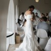 Yvette is tradition with a twist and showcases the technical expertise of the Hera Atelier. The drop shoulder fabric seamlessly flows into a Mikado pleated bust and subtle ‘V’ back which is finished with a fabric wrapped button closure. Silky drill satin glows and reflects light, while a subtle belt defines the waist. Yvette stands out with her cloud like hemline. The bubble feature is truly unique and is perfect for brides who literally want to float down the aisle.