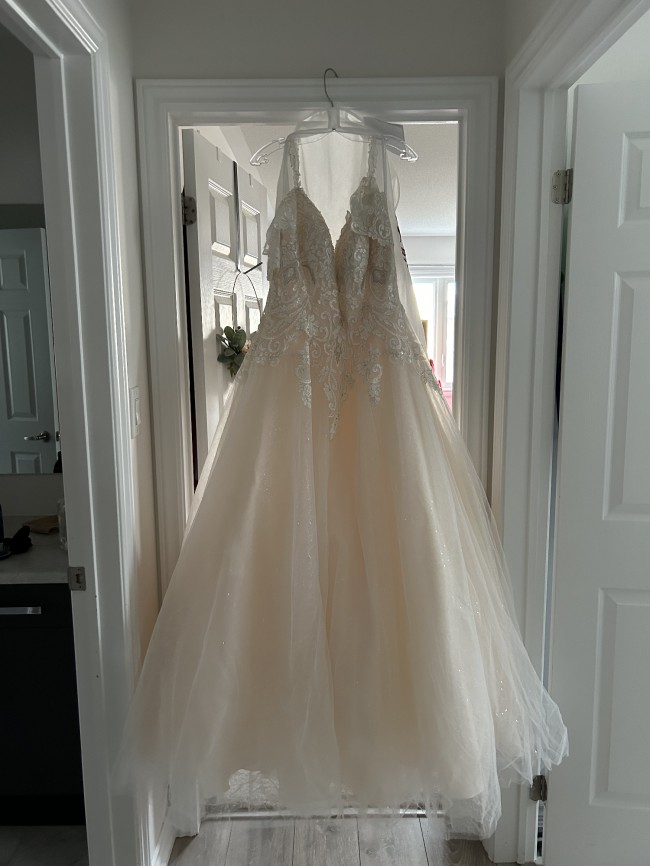 Never worn after purchase Beautiful brand new wedding dress. Colour is I ivory blush. No alterations were done.