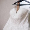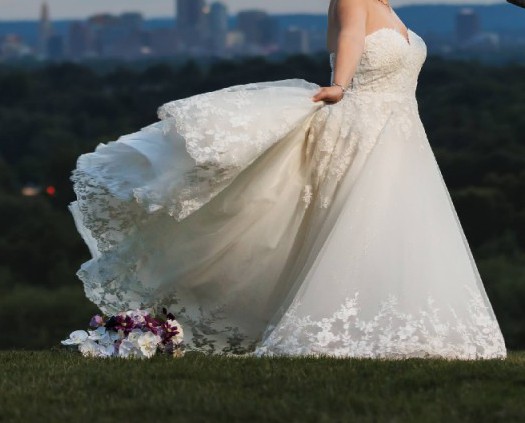 Dress has some glitter but subtle. Very flowy and comfortable. HAS POCKETS! For a ball gown I never felt like it was "too much dress". Wore it in the middle of summer and did not get hot at all.