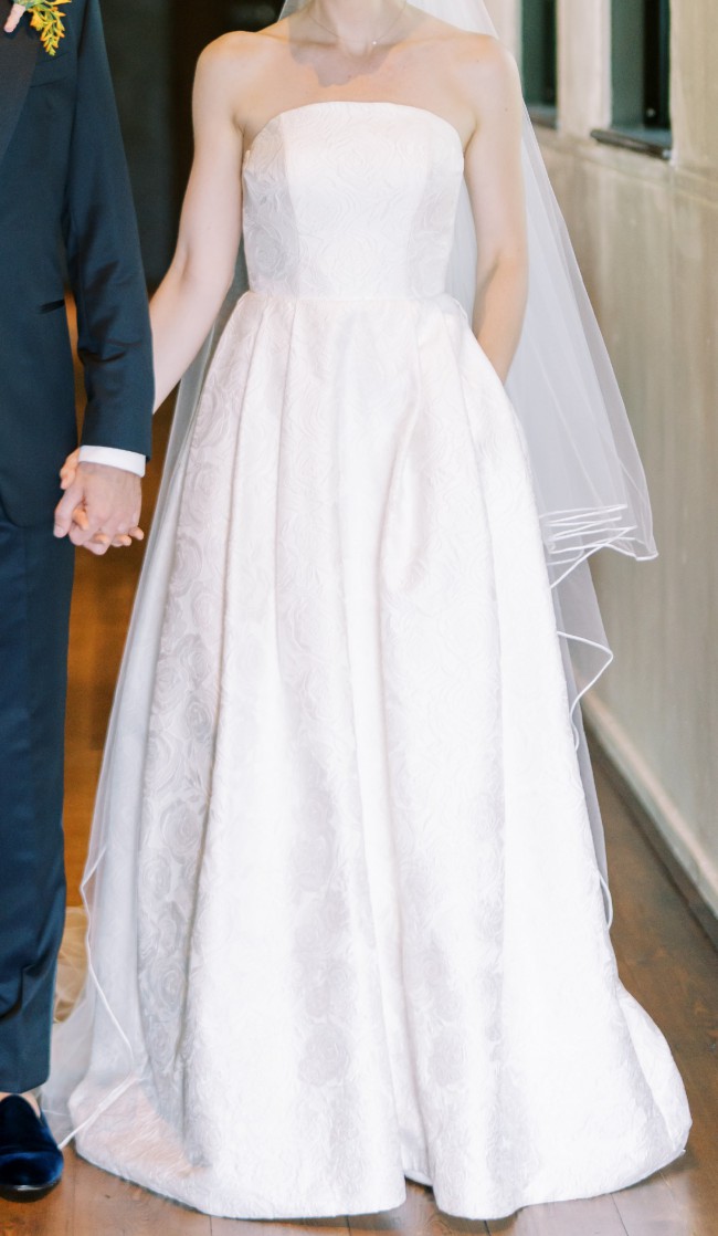 - Previously had a ballgown bustle that tucked the skirt up underneath (looked great!) but I removed those ties post-wedding to enable easier dry cleaning