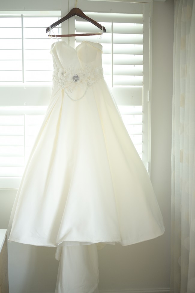 Button detail down the back seam of gown