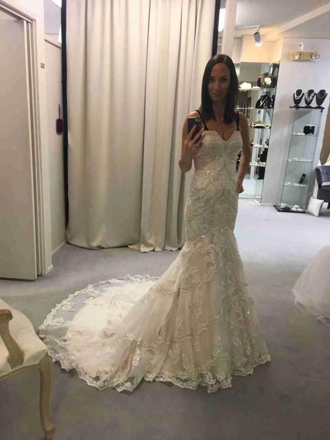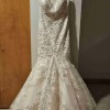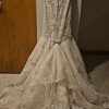 What made me fall in love with this gown was the beautiful & delicate beading and lace all over the dress. It made me feel so beautiful and elegant. The gown fit perfectly and only had 2" taken from the bottom as I wore 3" heels which allowed for the front of the gown to be floor length as well as keeping all of the beautiful details to the gown. The train was a perfect length and also has a hook in the back which allowed for it to be bustled up afterwards. Veil is included! I am hoping to share this gorgeous gown with someone else so that they may have as much joy and feel beautiful & special as I did on my special day.