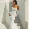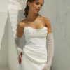 Strapless structured sweetheart with draped bodice and skirt Shown with S Sleeves #7A01