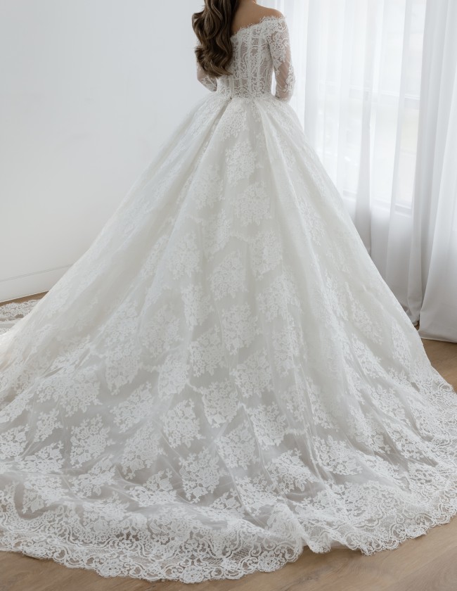 The intricate embroidery adds a unique touch, making every detail of the dress stand out. With long sleeves that offer a touch of sophistication, this gown is perfect for any season. The mid-back design provides just the right hint of allure while still being effortlessly chic.