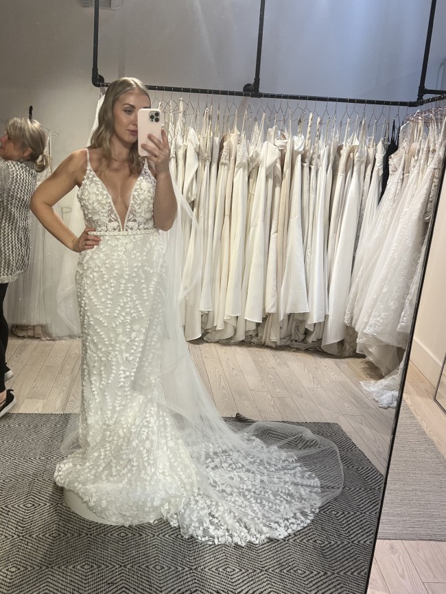 Designed with delicate spaghetti straps, the Elliot combines comfort with style, ensuring you feel confident and beautiful throughout your special day. The intricate 3D flowers and delicate beading thoughtfully embellish the lace, creating a texture that catches the light and dazzles from every angle. Each detail is meticulously crafted, making this gown a true statement piece.