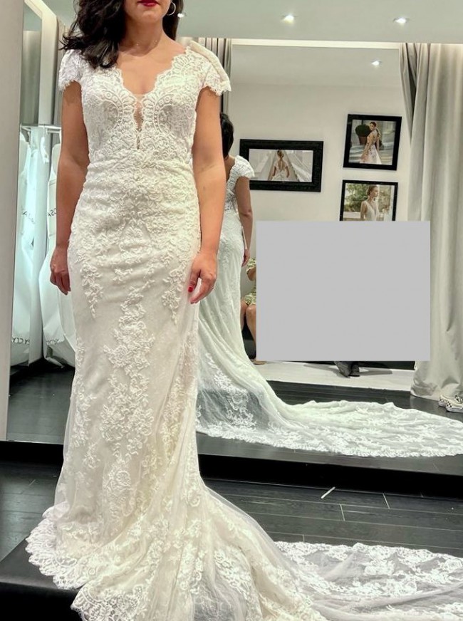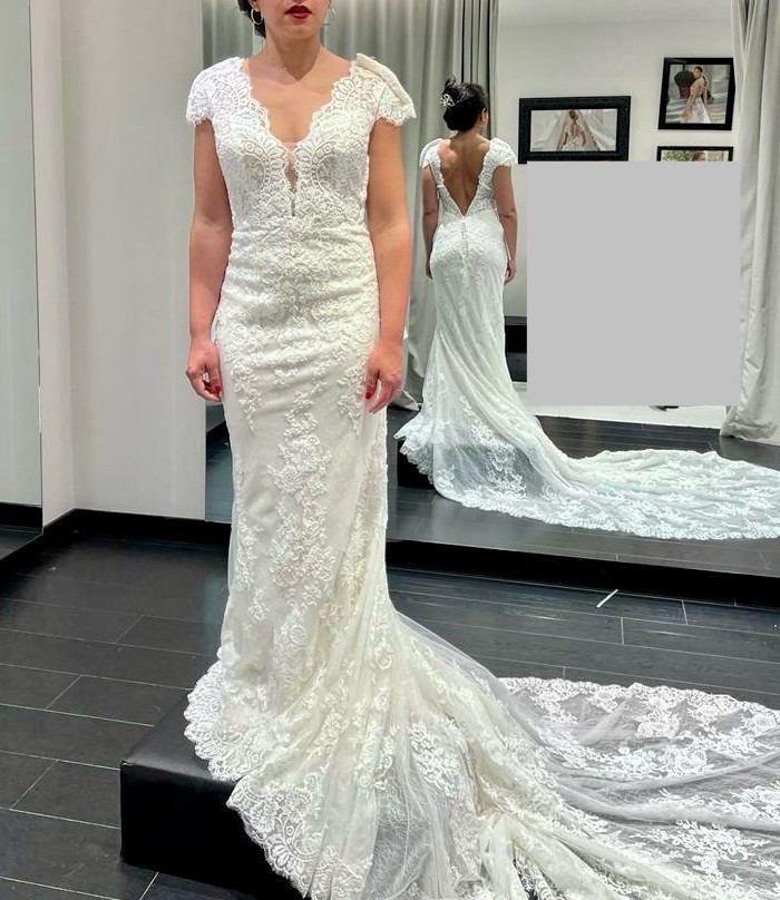 Why am I selling this dress I love so much? I initially chose this gown because I was drawn to its sophisticated design and the way it made me feel. I said yes to this dress the minute I tried it on. However, we decided to keep our wedding small and intimate, and this beautiful dress deserves its moment in the spotlight!