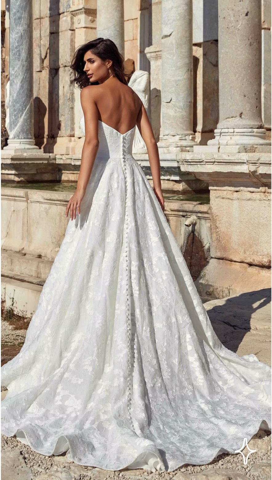 It is a brand new never been tried on, textured satin, sweetheart neckline, strapless ball gown by EddyK from their Dreams Collection. Style# DR2521. It is also called "Girona". This gown is from their most recent "Dreams" collection and it was NEVER altered.